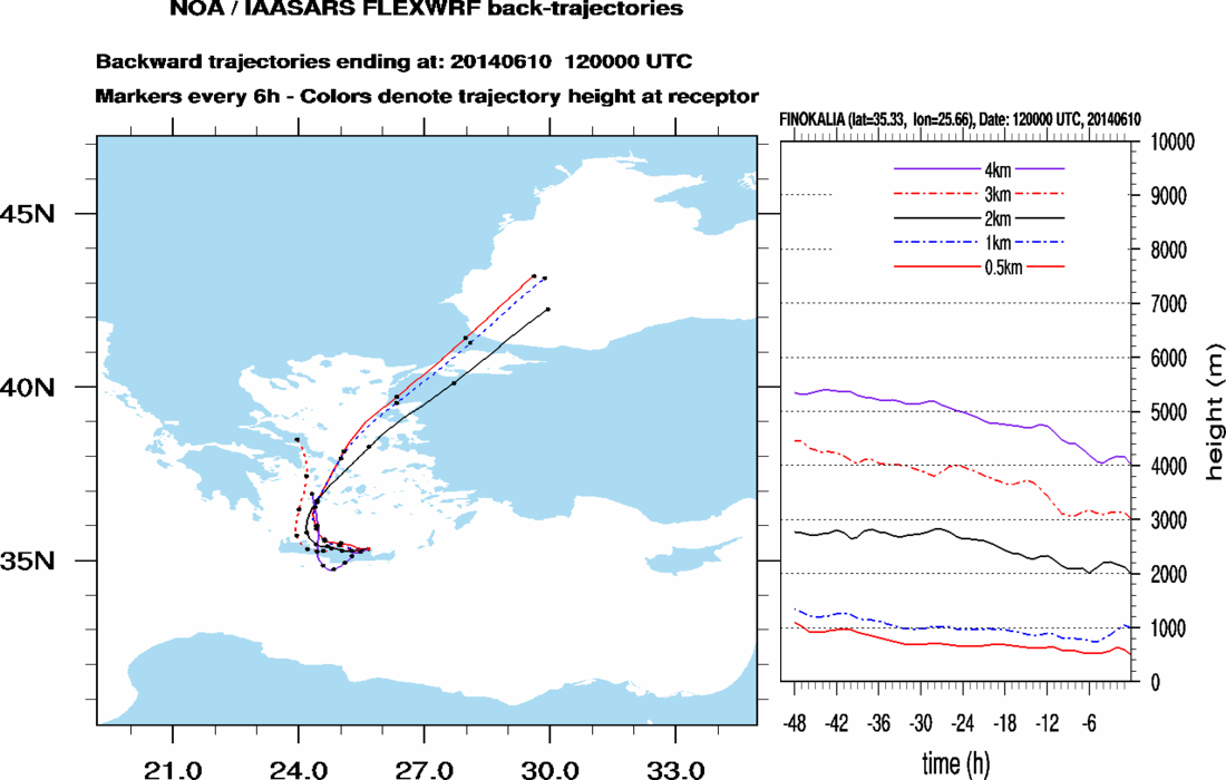 The Lagrangian dispersion model FLEXPART will be employed to provide daily forecasting back-trajectories at Finokalia station.