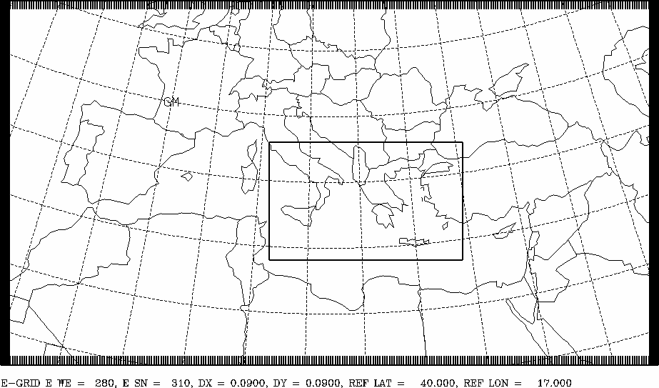 1. The WRF_NMM core will be configured at a resolution of 0.09x0.09 deg (external grid), 0.03x0.03 deg (inner grid) and 38 vertical levels.