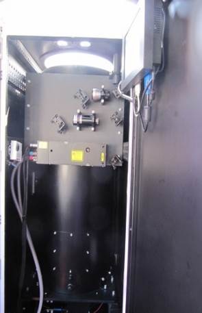 The receiving system consists of a Cassegrainian telescope and the wavelength separation/detection optical box. The diameter of telescope’s primary mirror is 400mm and the focal length 4000mm, coated with HR coatings and with very small thermal expansion coefficient. The diaphragm, mounted beneath the primary mirror, has adjustable diameter (from 1 mm up to 12.5), depending on the atmospheric conditions and the strength of the aerosol load, giving the ability to detect from the lower to upper atmosphere.