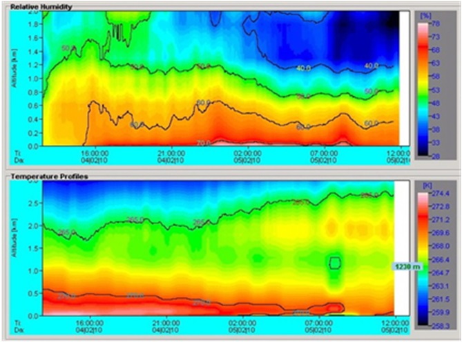 The second scanning mode aims to boundary layer studies up to 1km with a higher spatial resolution of 50m. The latter is essential for resolving temperature inversions within the boundary layer.