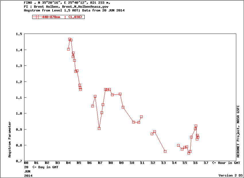 Graph 3: Angstrom exponent 440-870nm -Level 1.5