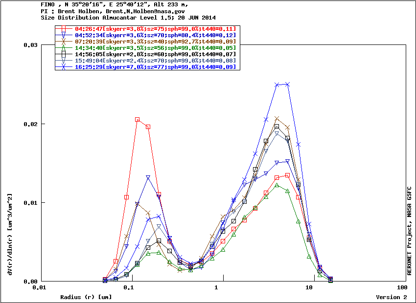 Graph 1: Aerosol volume size distribution -Level 1.5