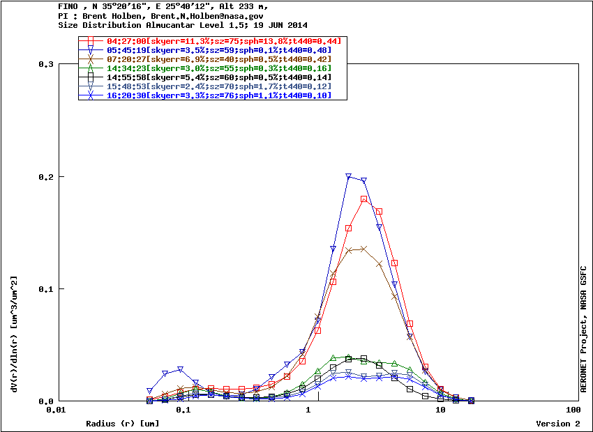 Graph 1: Aerosol volume size distribution -Level 1.5