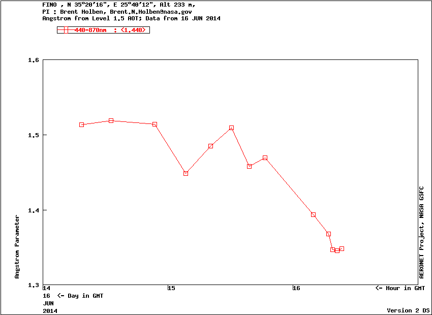 Graph 3: Angstrom exponent 440-870nm -Level 1.5