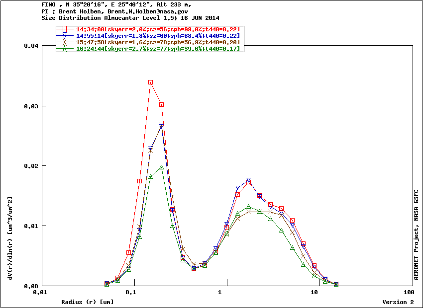 Graph 1: Aerosol volume size distribution -Level 1.5