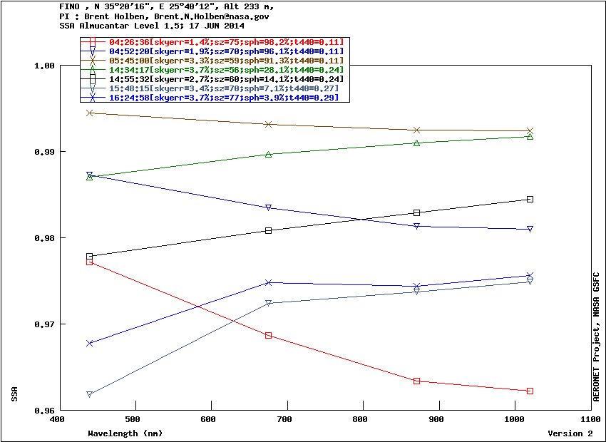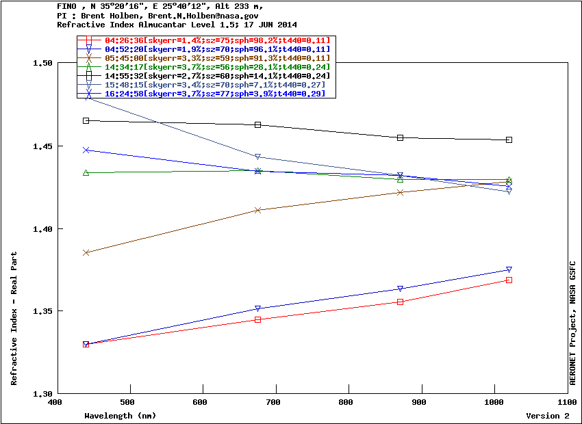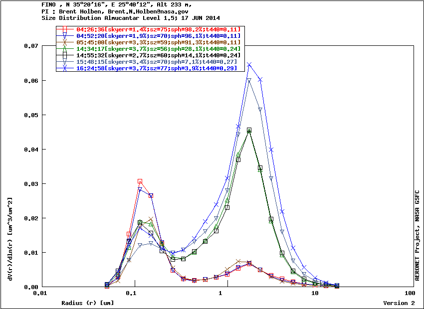 Graph 1: Aerosol volume size distribution -Level 1.5