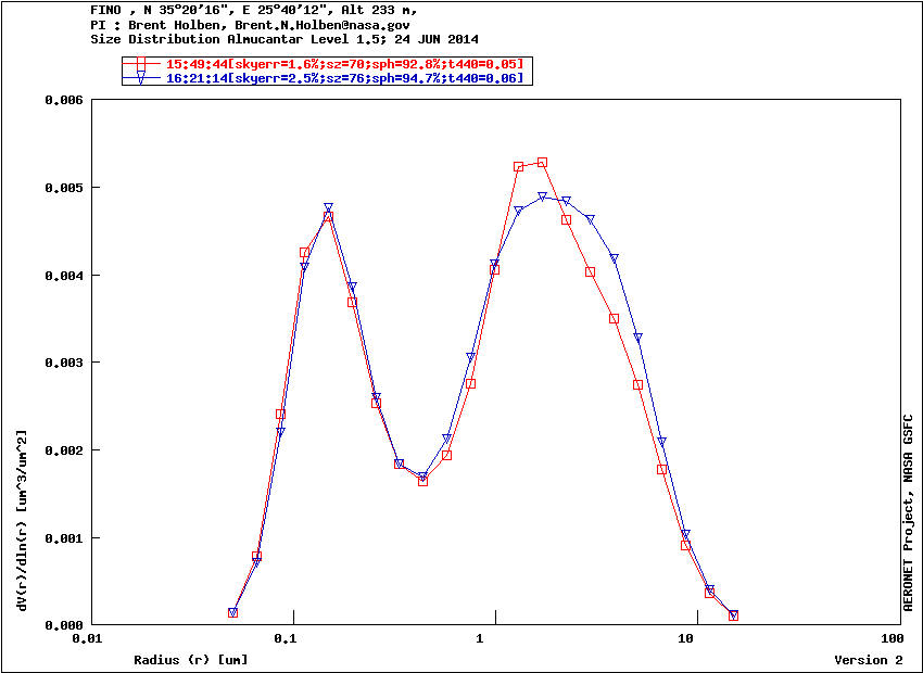 Graph 1: Aerosol volume size distribution -Level 1.5