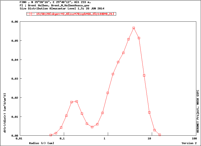 Graph 1: Aerosol volume size distribution -Level 1.5