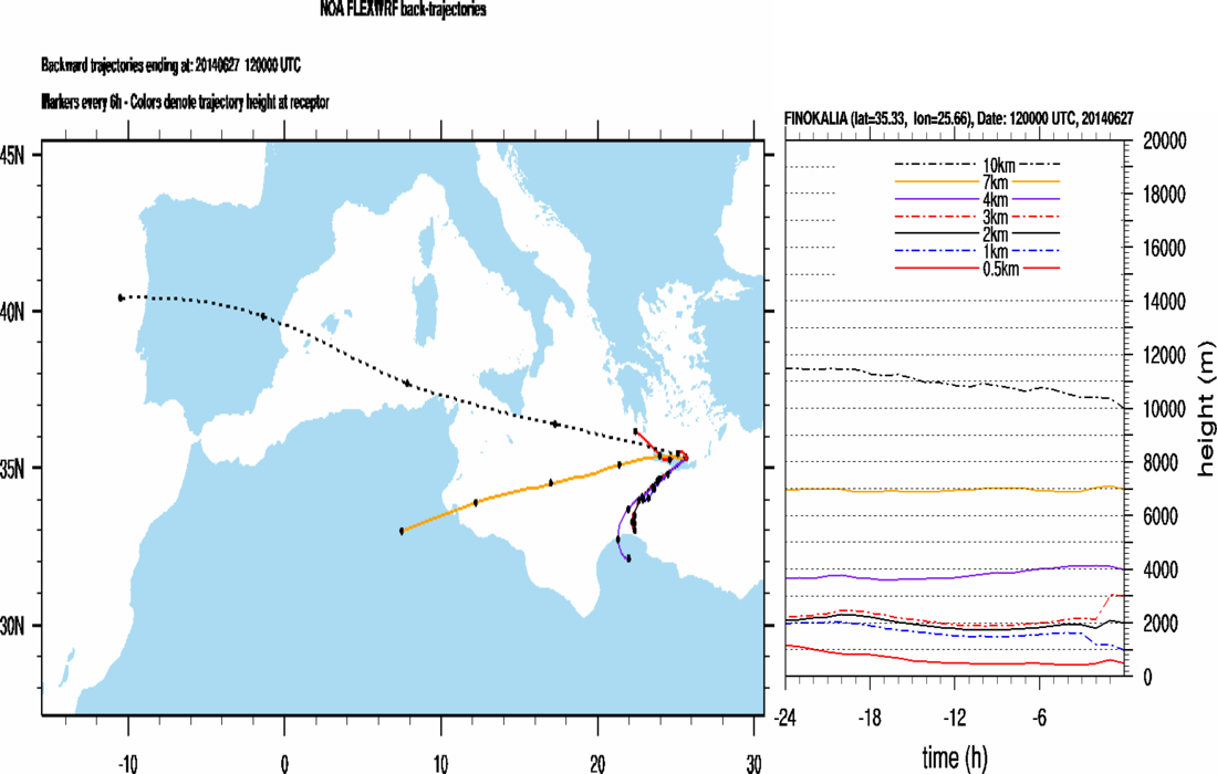 Graph 1: Backtrajectories forecast for Finokalia (+ 24 h)