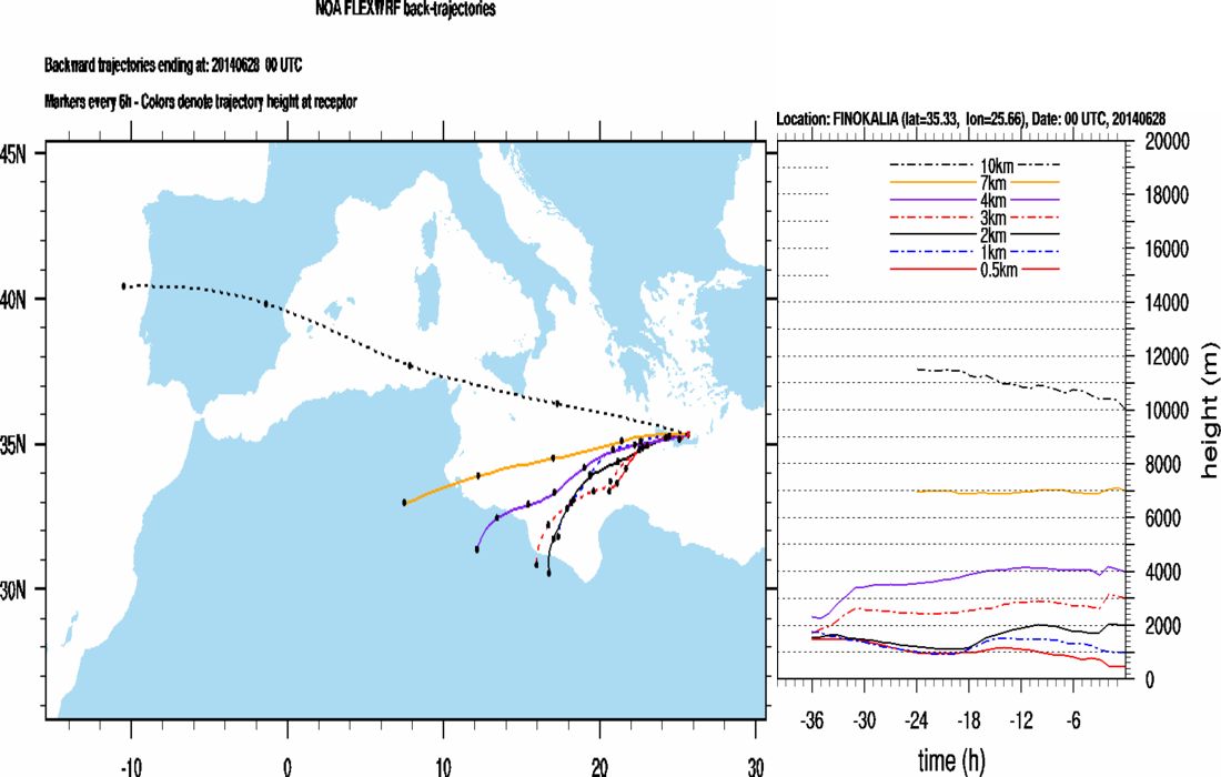 Graph 2: Backtrajectories forecast for Finokalia (+ 36 h)