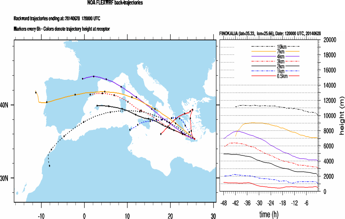 Graph 3: Backtrajectories forecast for Finokalia (+ 48 h)