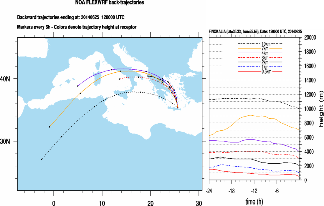 Graph 1: Backtrajectories forecast for Finokalia (+ 24 h)