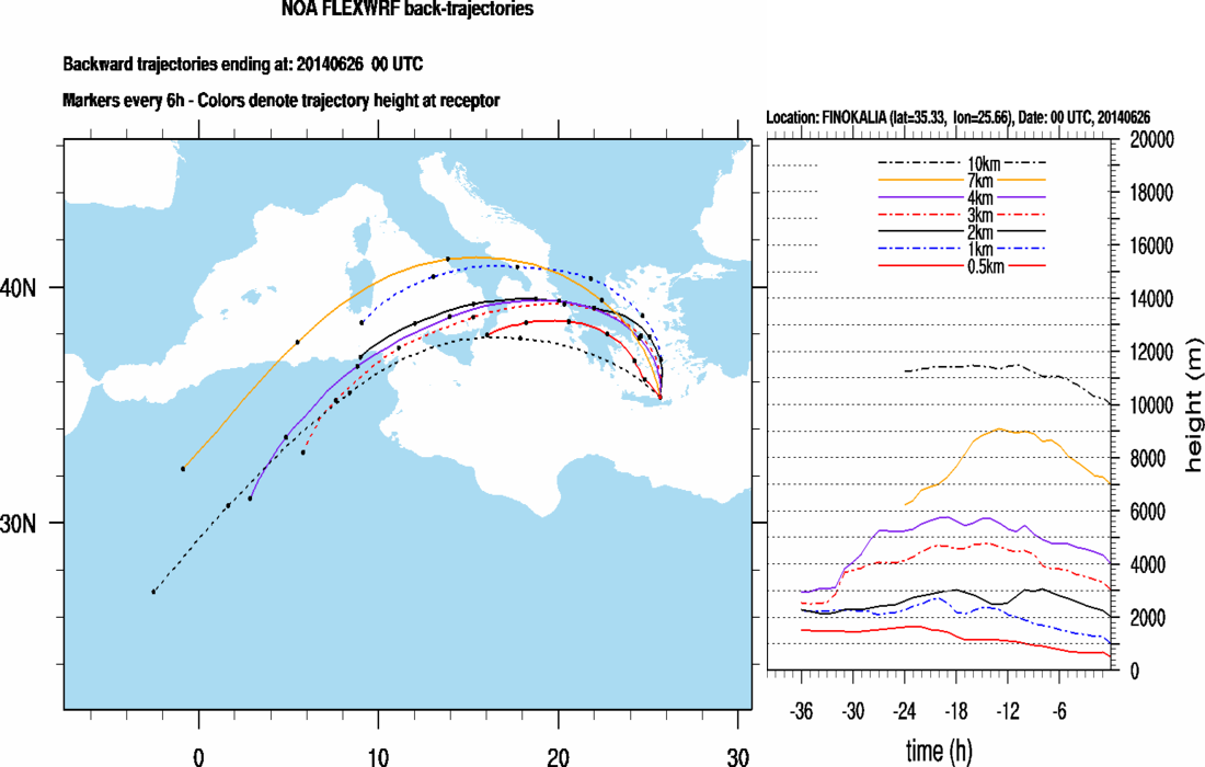 Graph 2: Backtrajectories forecast for Finokalia (+ 36 h)