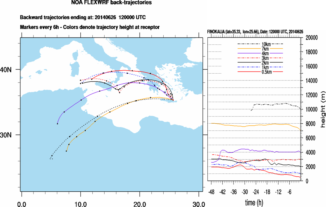 Graph 3: Backtrajectories forecast for Finokalia (+ 48 h)