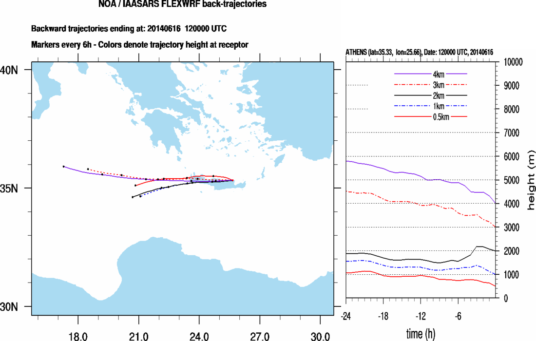 Graph 1: Backtrajectories forecast for Finokalia (+ 24 h)