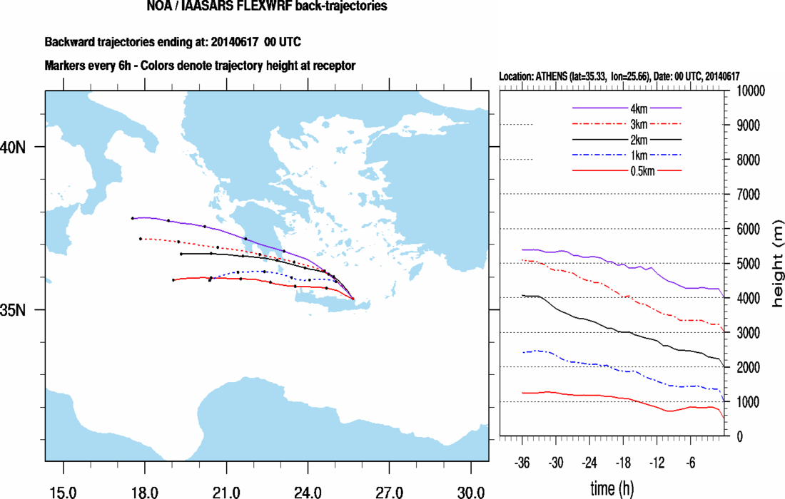 Graph 2: Backtrajectories forecast for Finokalia (+ 36 h)