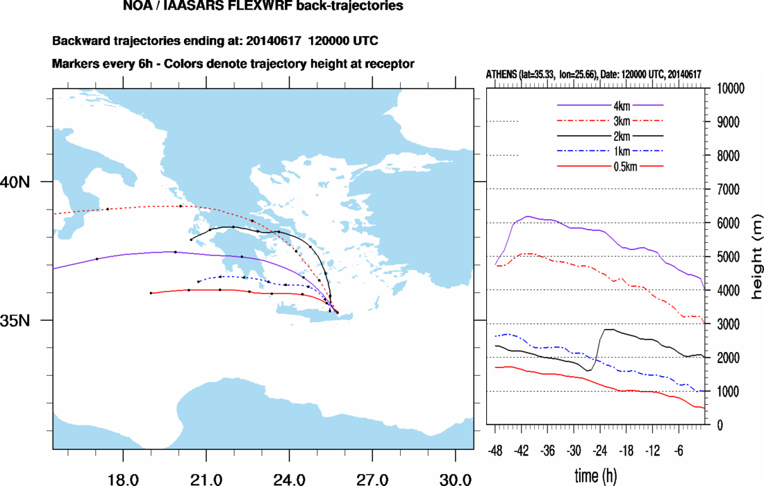Graph 3: Backtrajectories forecast for Finokalia (+ 48 h)