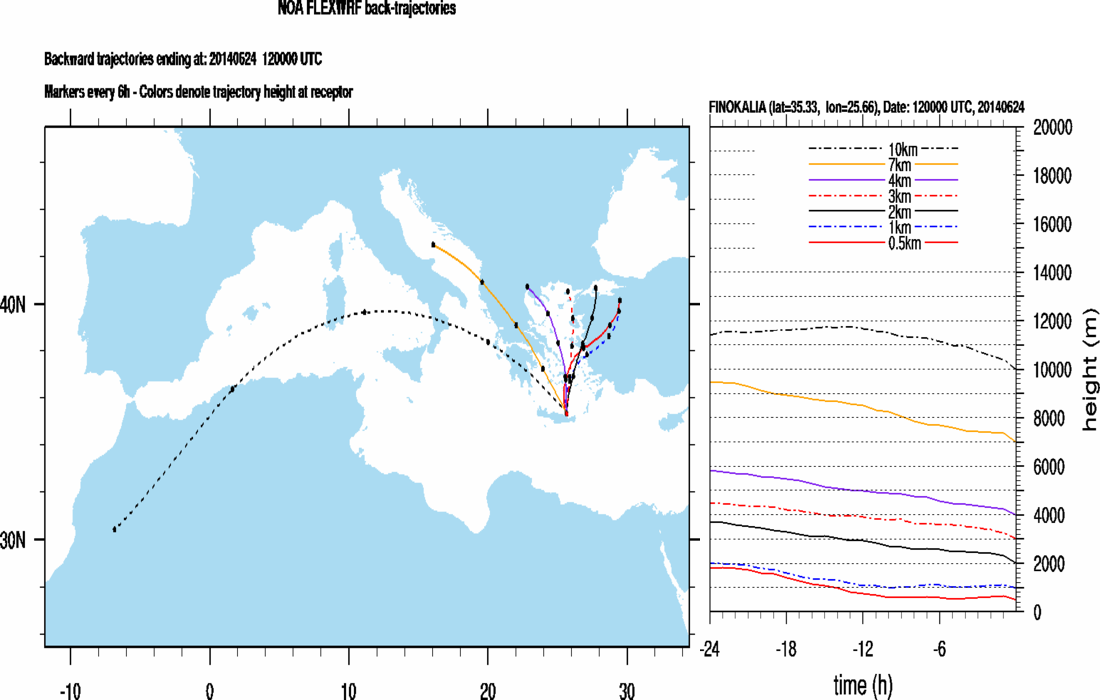 Graph 1: Backtrajectories forecast for Finokalia (+ 24 h)