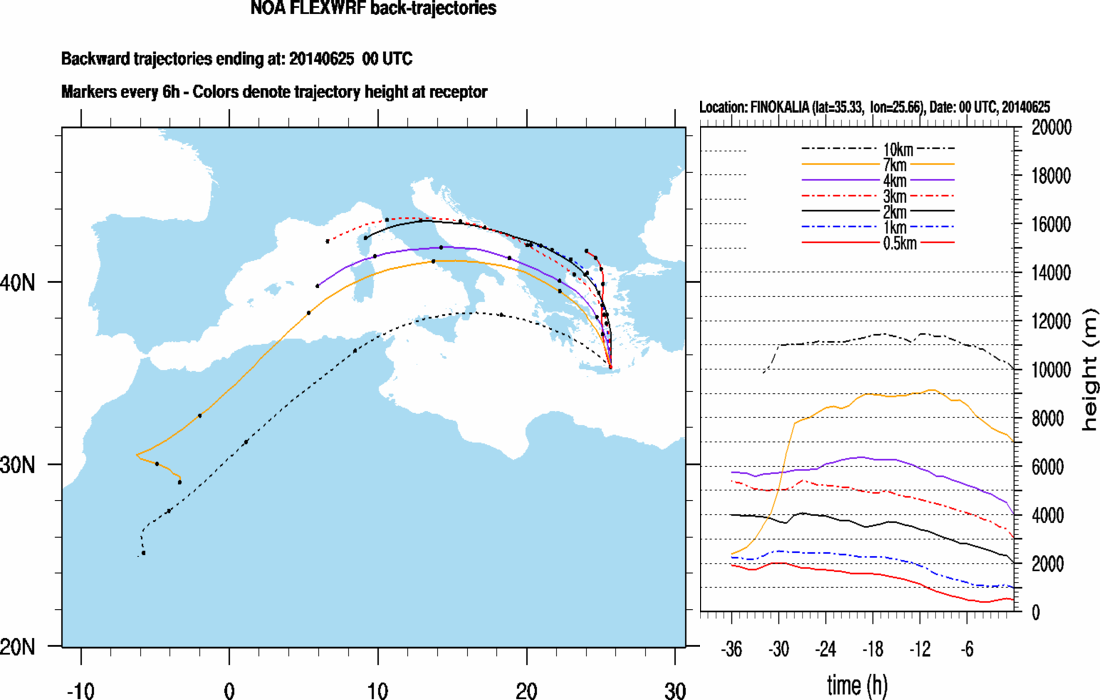 Graph 2: Backtrajectories forecast for Finokalia (+ 36 h)
