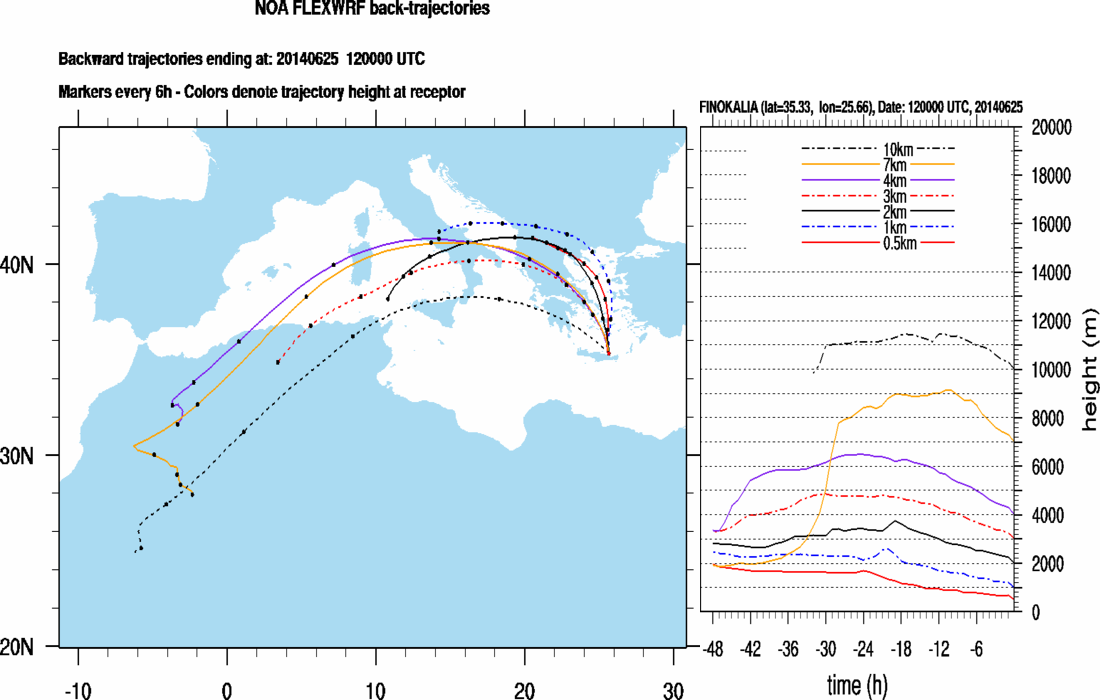 Graph 3: Backtrajectories forecast for Finokalia (+ 48 h)