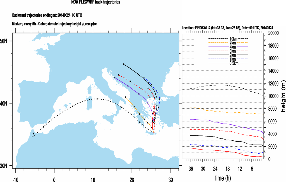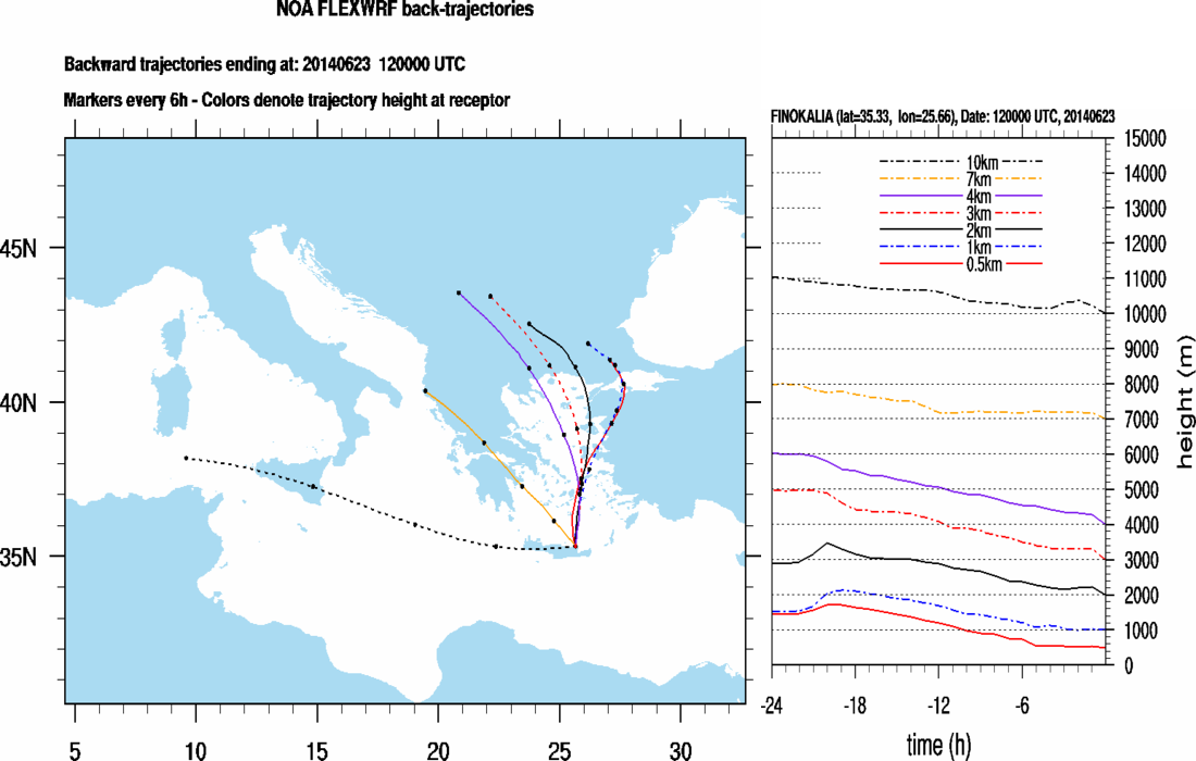 Graph 1: Backtrajectories forecast for Finokalia (+ 24 h)