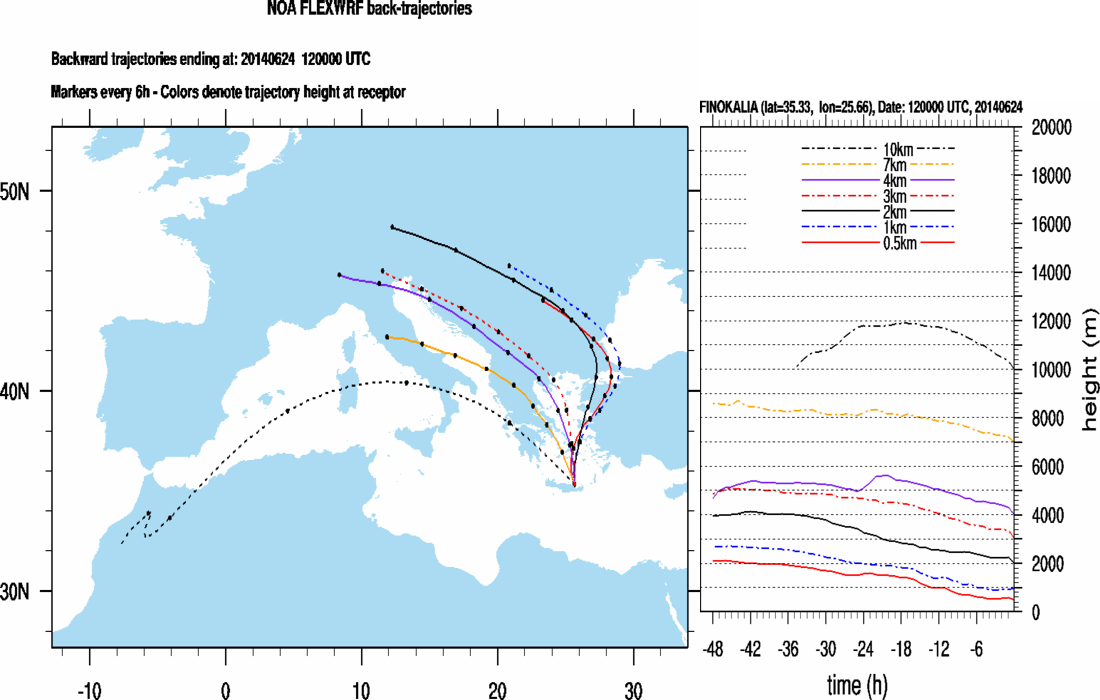 Graph 3: Backtrajectories forecast for Finokalia (+ 48 h)