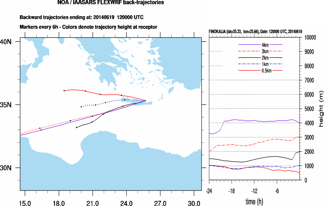 Graph 1: Backtrajectories forecast for Finokalia (+ 24 h)