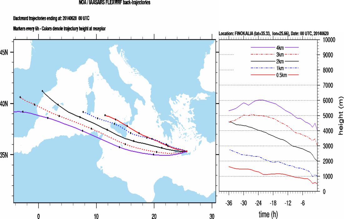 Graph 2: Backtrajectories forecast for Finokalia (+ 36 h)