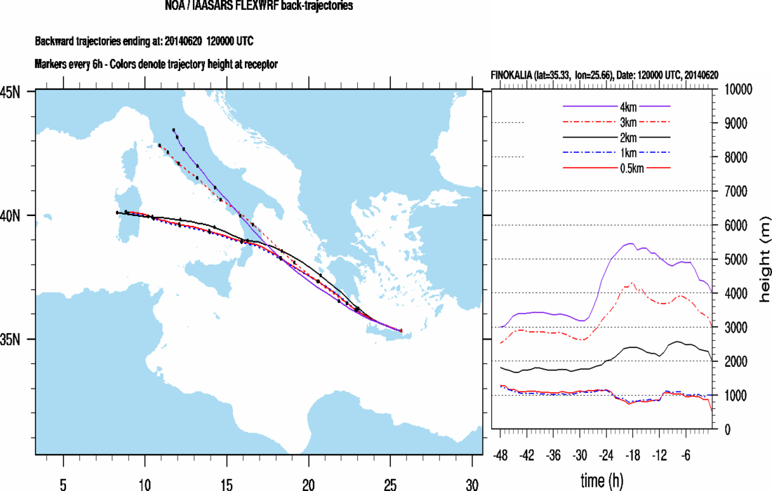 Graph 3: Backtrajectories forecast for Finokalia (+ 48 h)