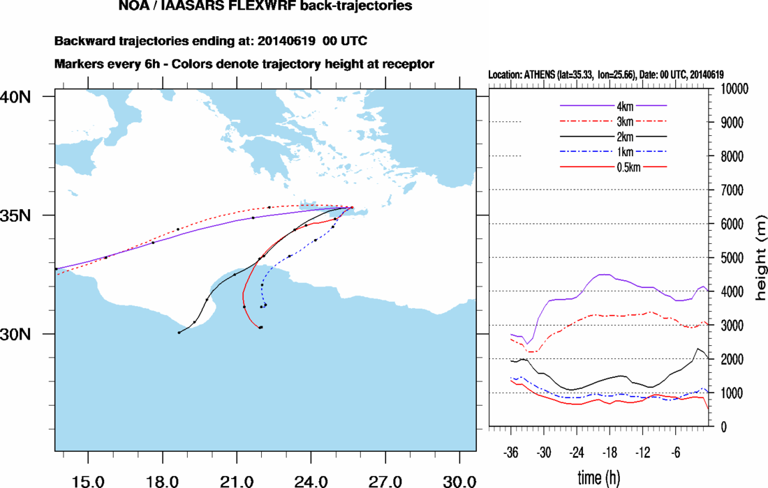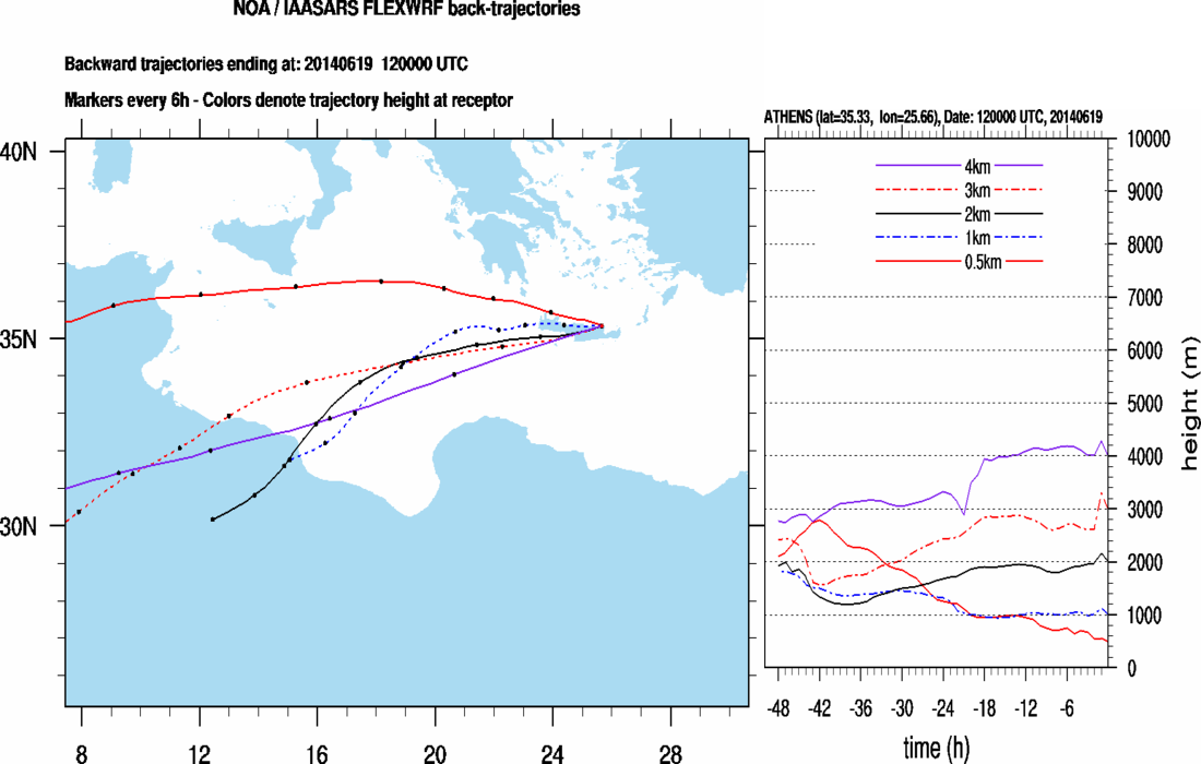 Graph 2: Backtrajectories forecast for Finokalia (+ 36 h)