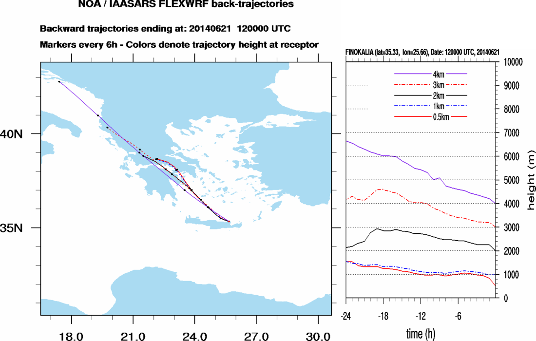 Graph 1: Backtrajectories forecast for Finokalia (+ 24 h)