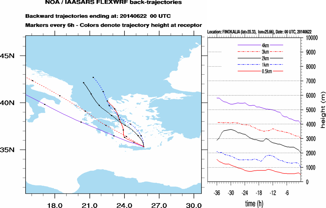 Graph 2: Backtrajectories forecast for Finokalia (+ 36 h)