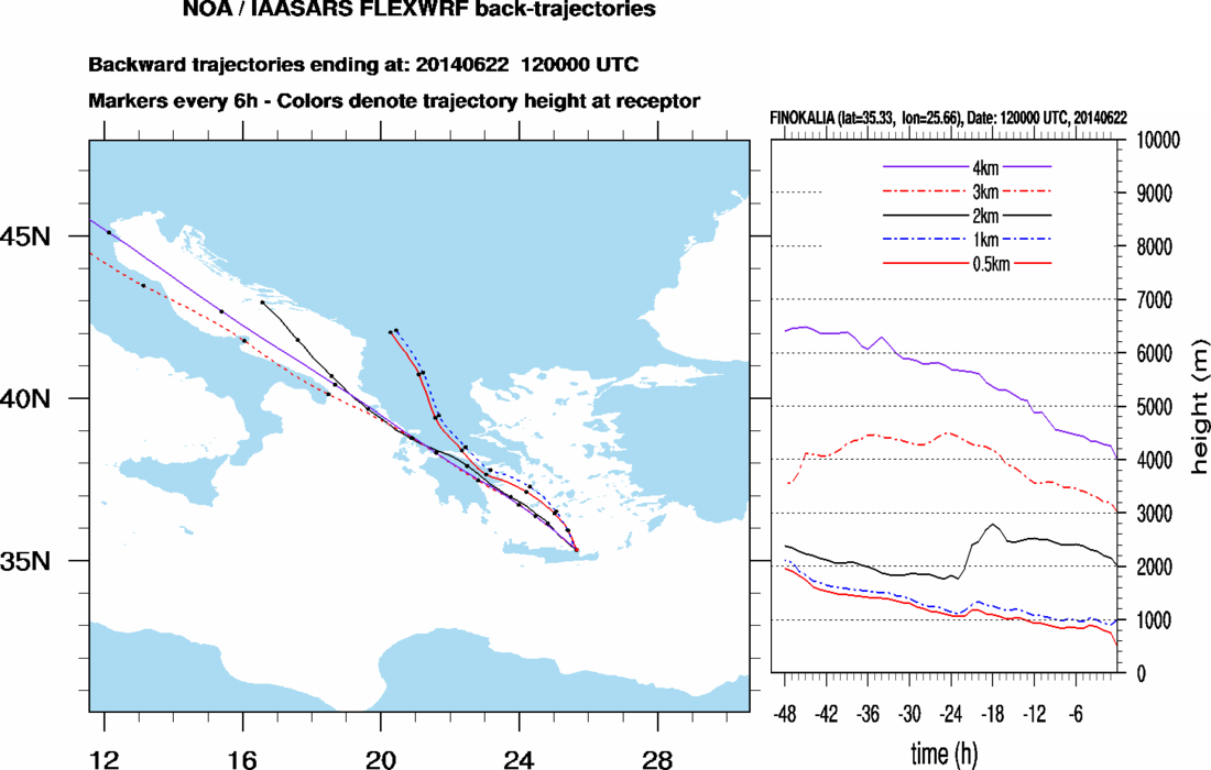 Graph 3: Backtrajectories forecast for Finokalia (+ 48 h)