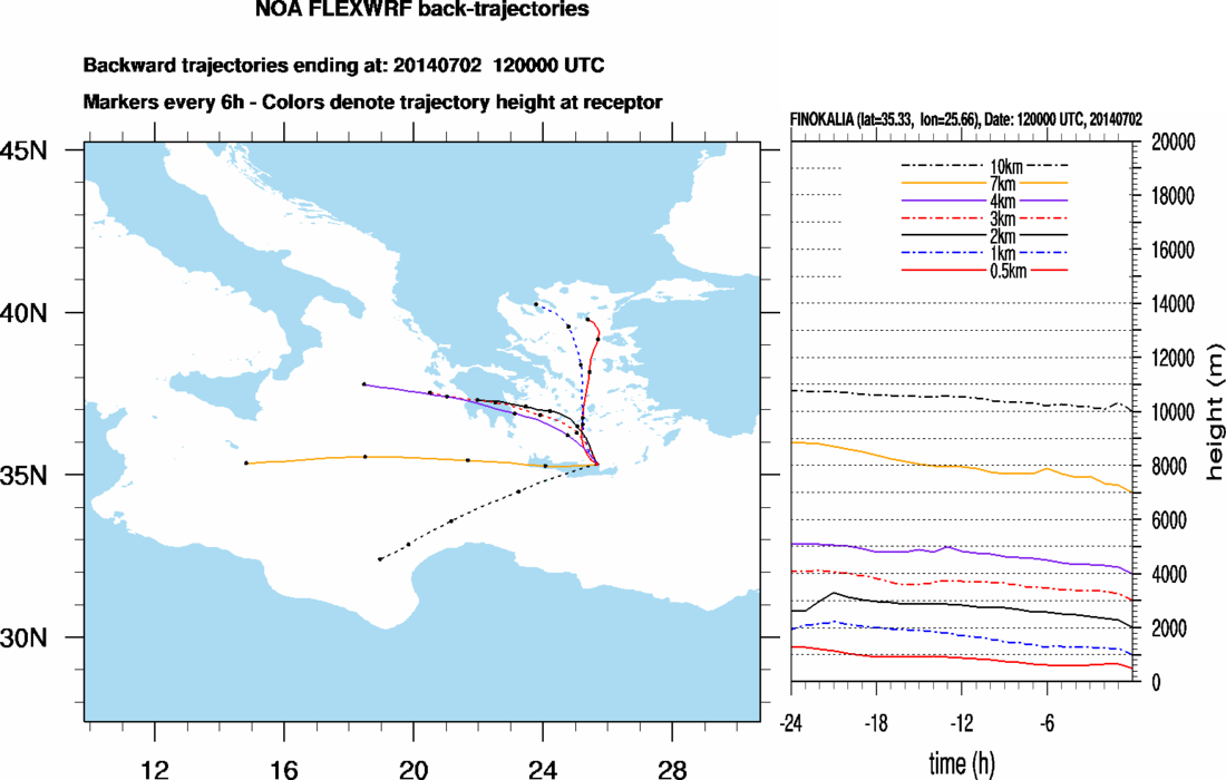Graph 1: Backtrajectories forecast for Finokalia (+ 24 h)