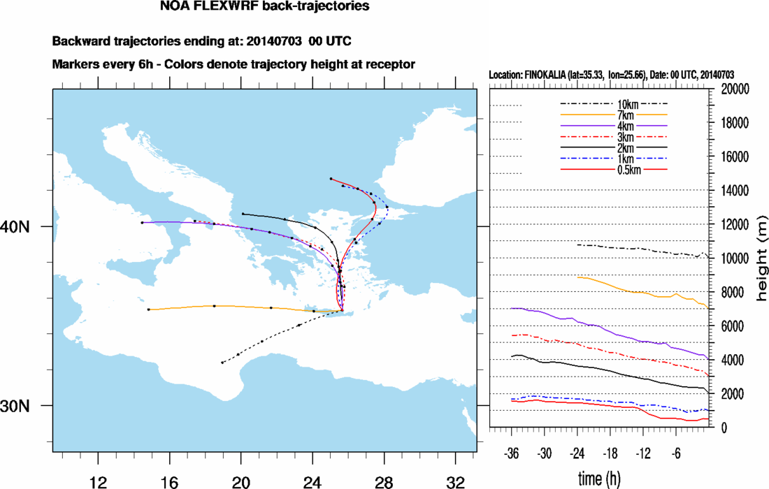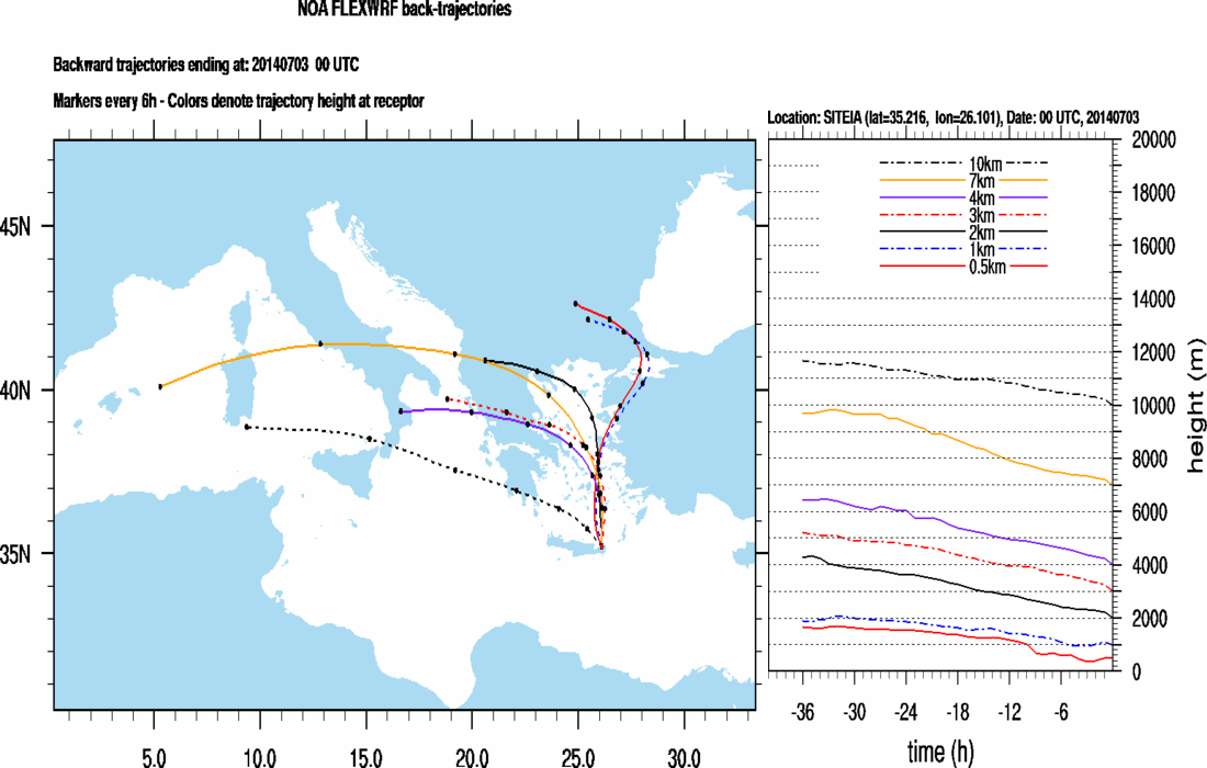 Graph 2: Backtrajectories forecast for Finokalia (+ 36 h)