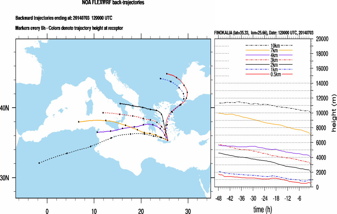 Graph 3: Backtrajectories forecast for Finokalia (+ 48 h)