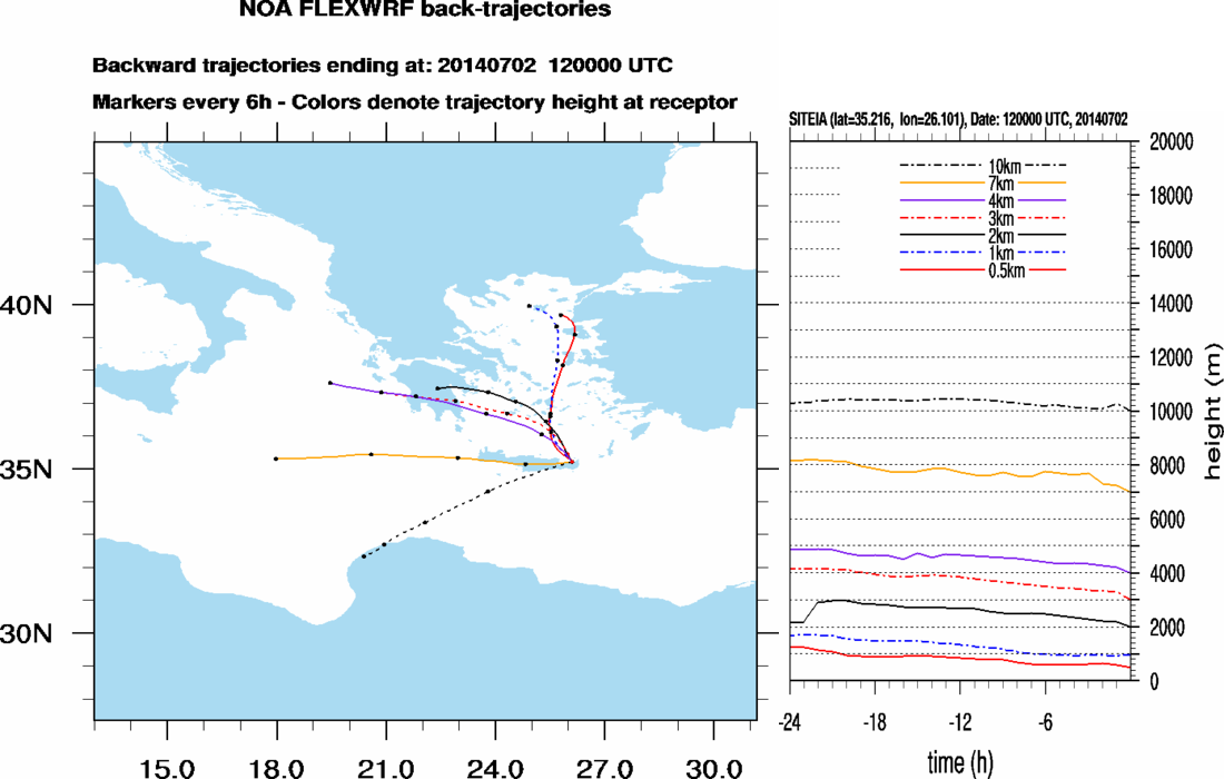 Graph 4: Backtrajectories forecast for Sitia (+ 24 h)