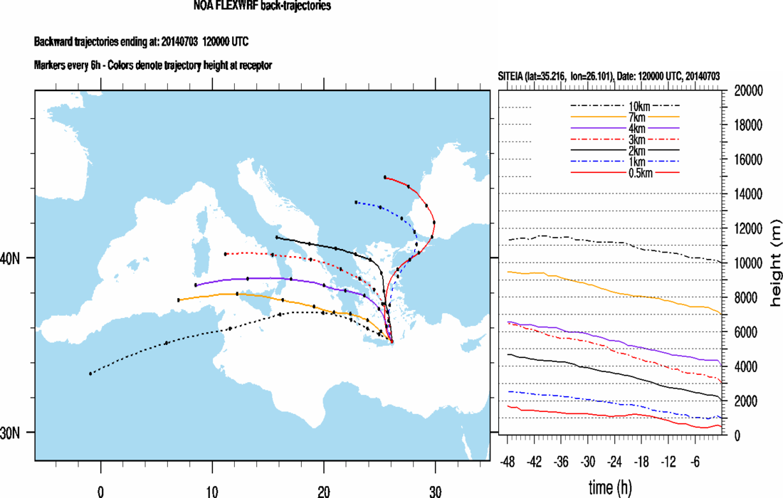 Graph 6: Backtrajectories forecast for Sitia (+ 48 h)