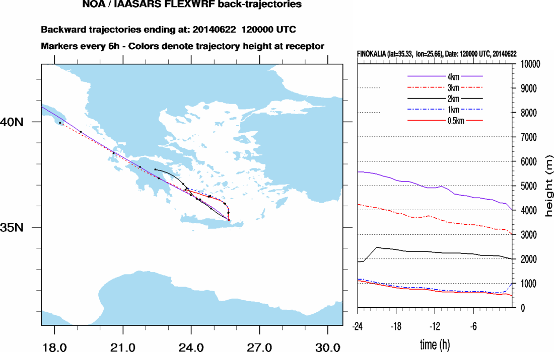 Graph 1: Backtrajectories forecast for Finokalia (+ 24 h)
