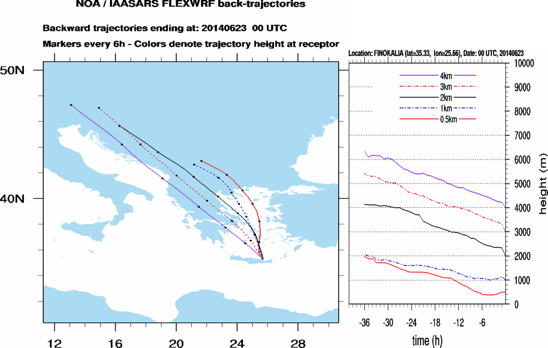 Graph 2: Backtrajectories forecast for Finokalia (+ 36 h)