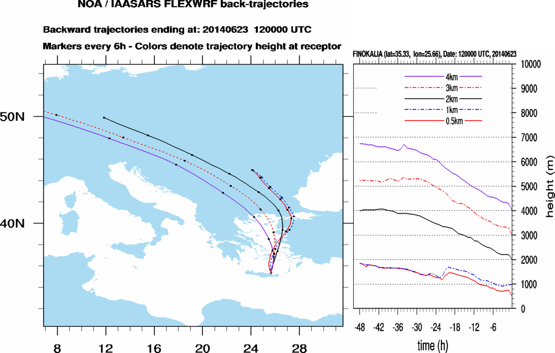 Graph 3: Backtrajectories forecast for Finokalia (+ 48 h)