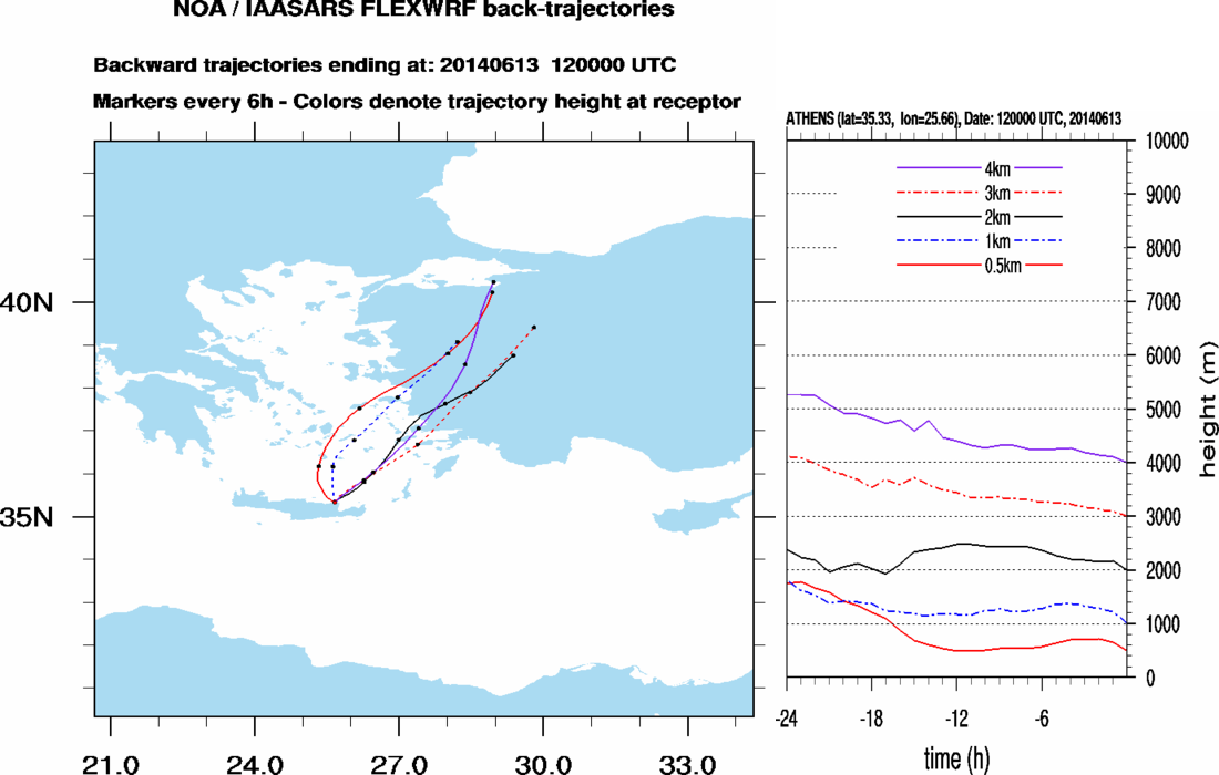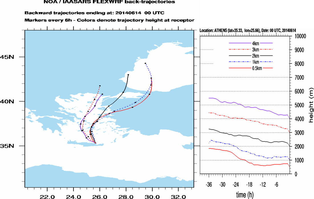 Graph 2: Backtrajectories forecast for Finokalia (+ 36 h)