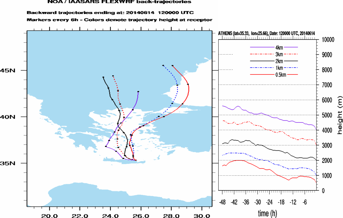 Graph 3: Backtrajectories forecast for Finokalia (+ 48 h)