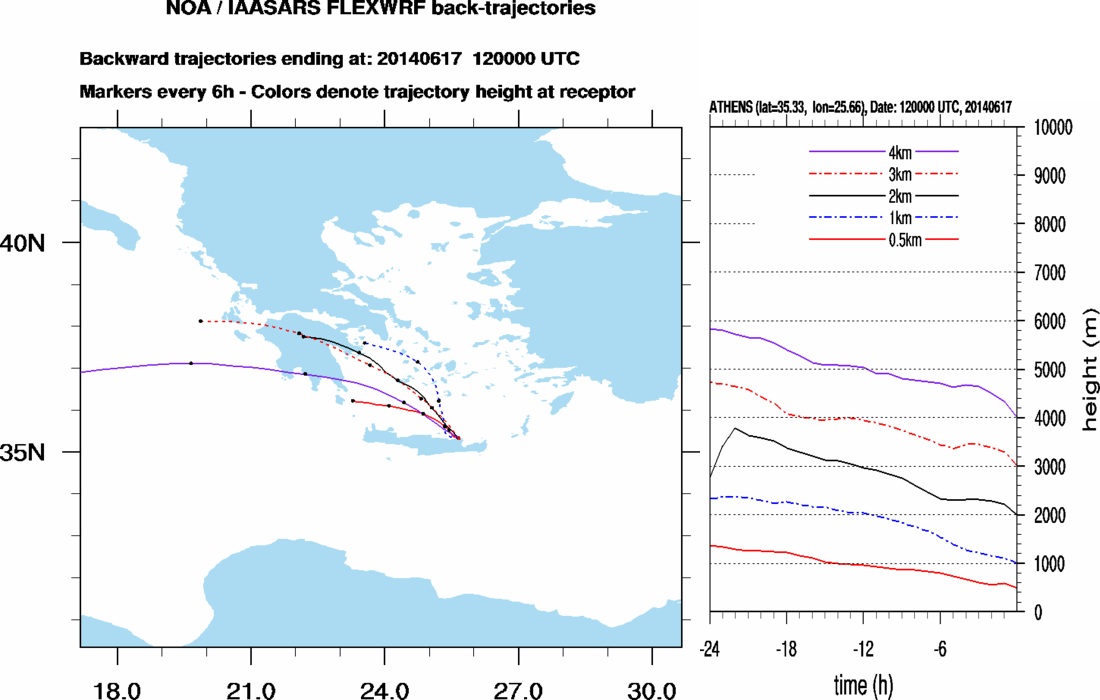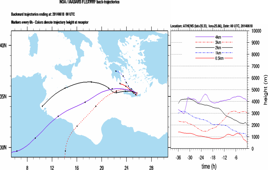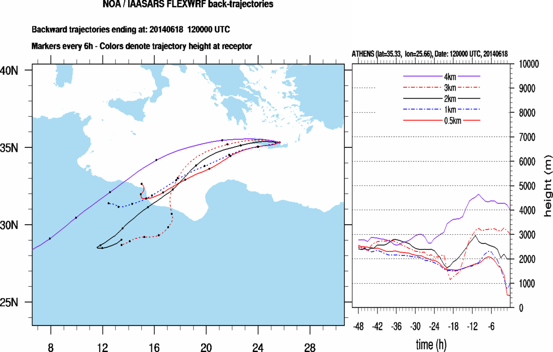 Graph 2: Backtrajectories forecast for Finokalia (+ 36 h)