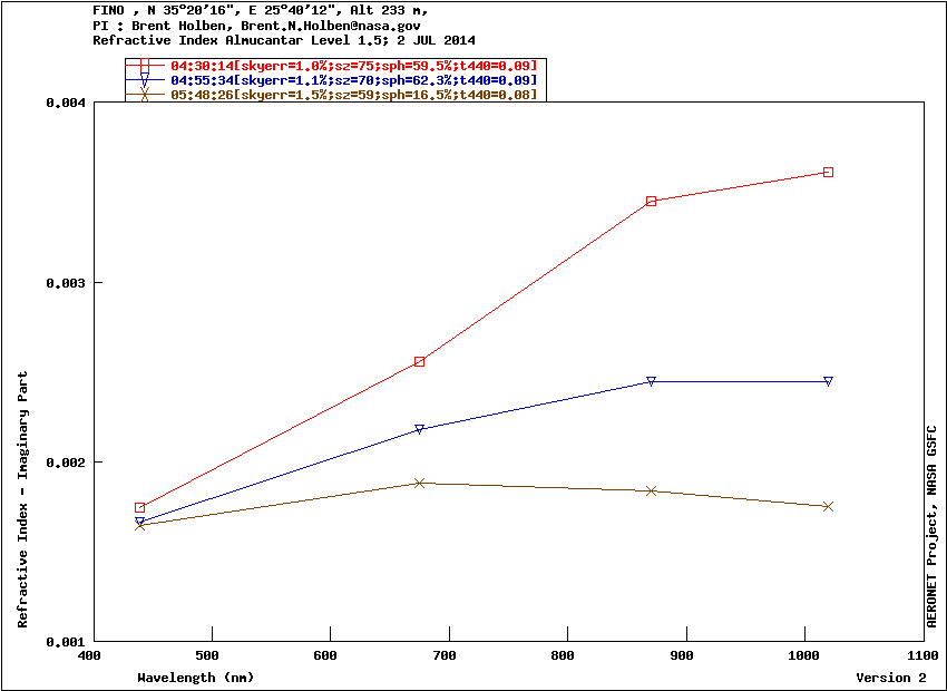 Graph 5: Refractive index (imaginary part) -Level 1.5