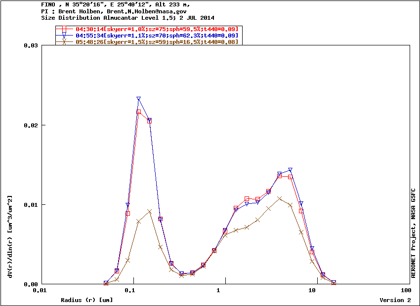 Graph 1: Aerosol volume size distribution -Level 1.5