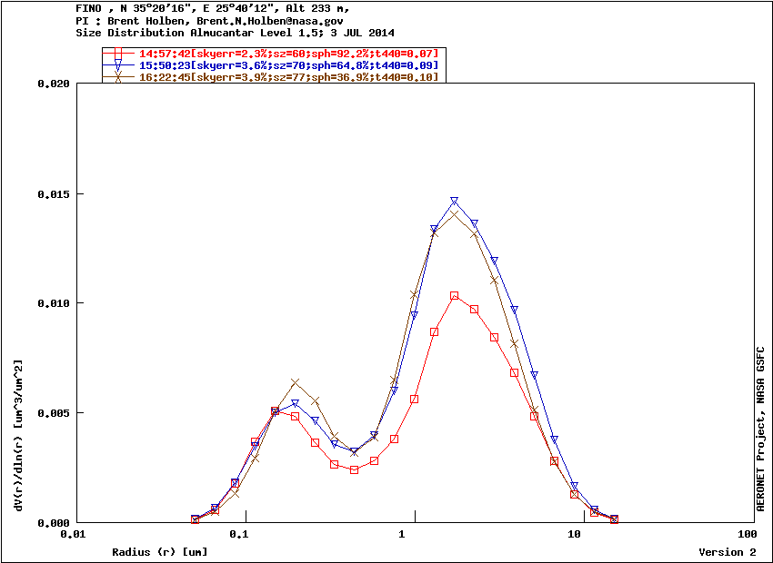 Graph 1: Aerosol volume size distribution -Level 1.5