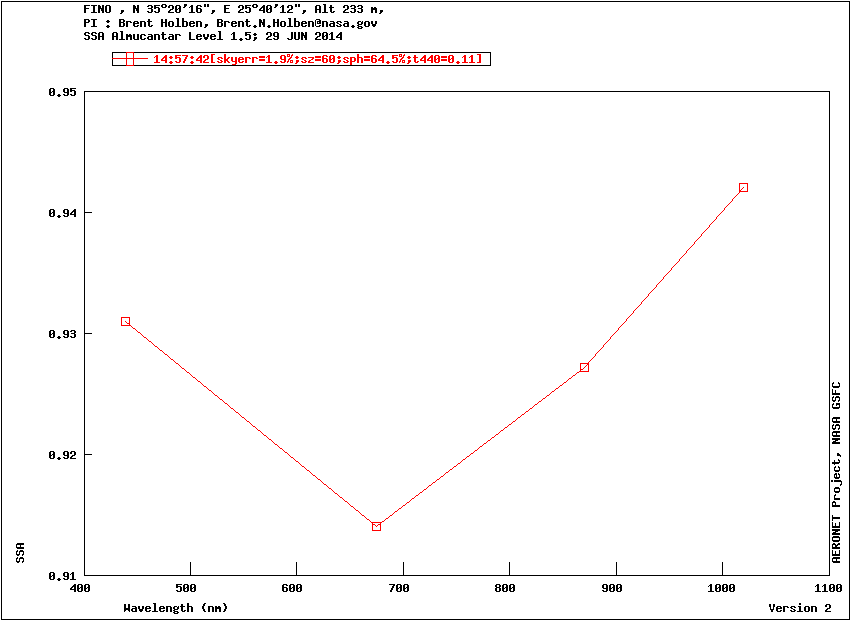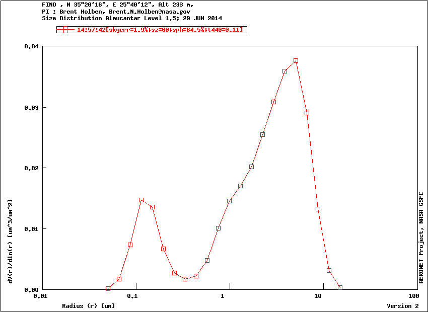 Graph 1: Aerosol volume size distribution -Level 1.5