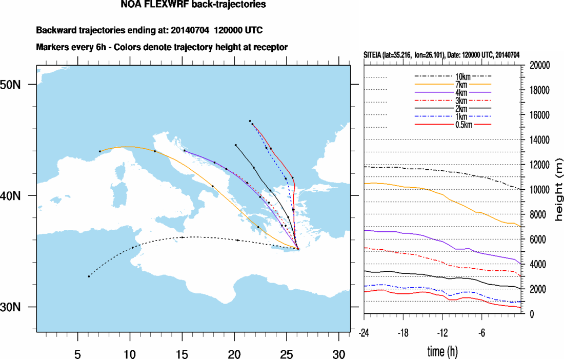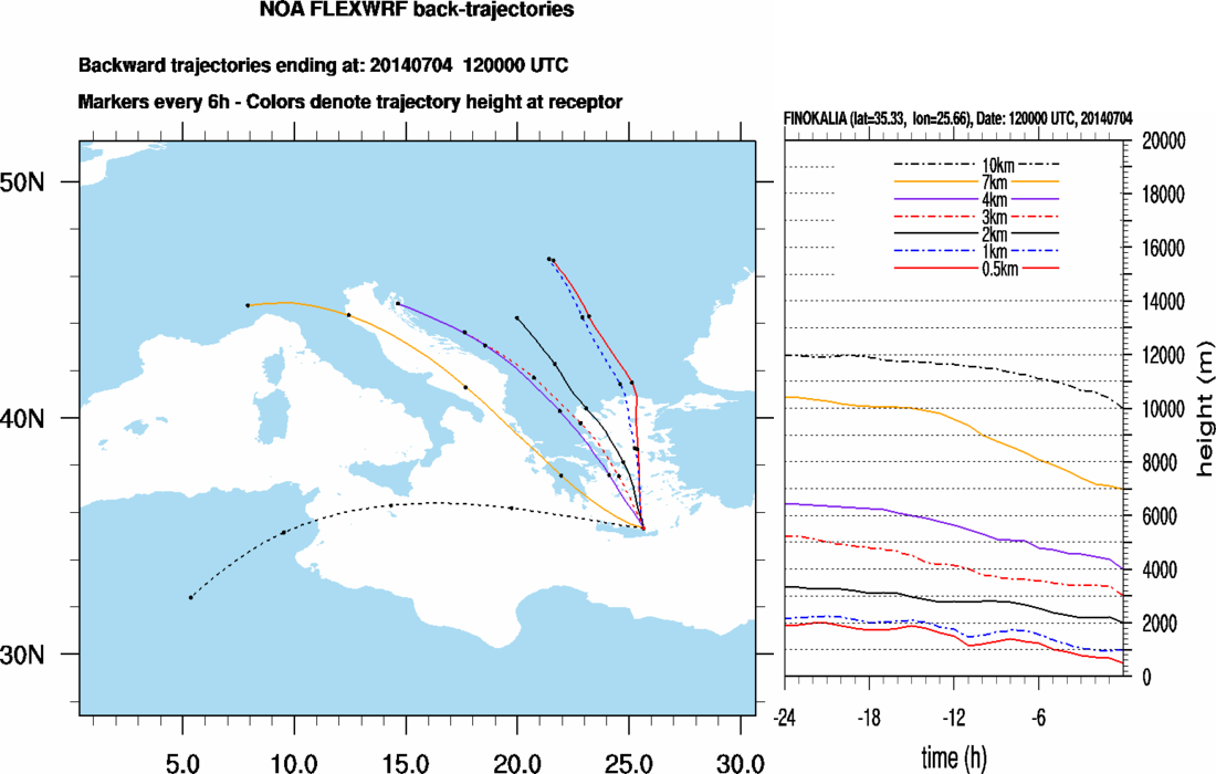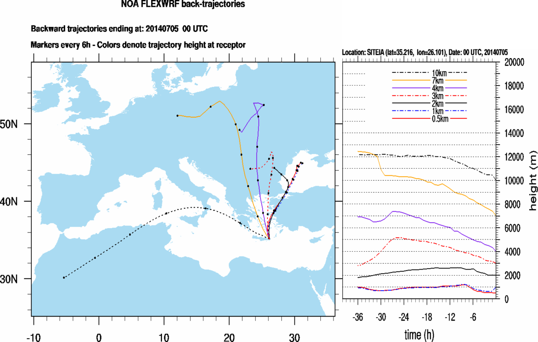 Graph 2: Backtrajectories forecast for Finokalia (+ 36 h)