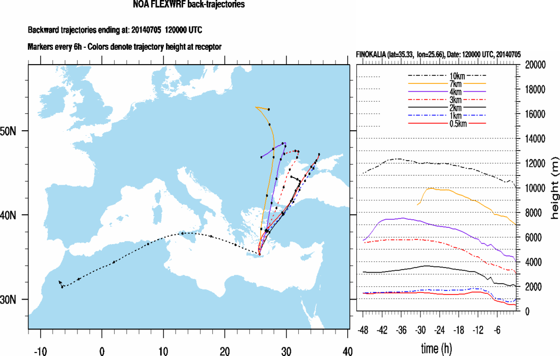 Graph 3: Backtrajectories forecast for Finokalia (+ 48 h)